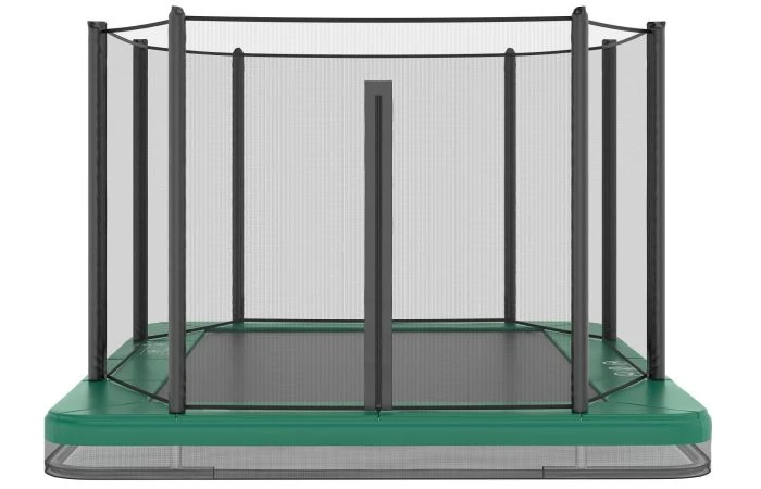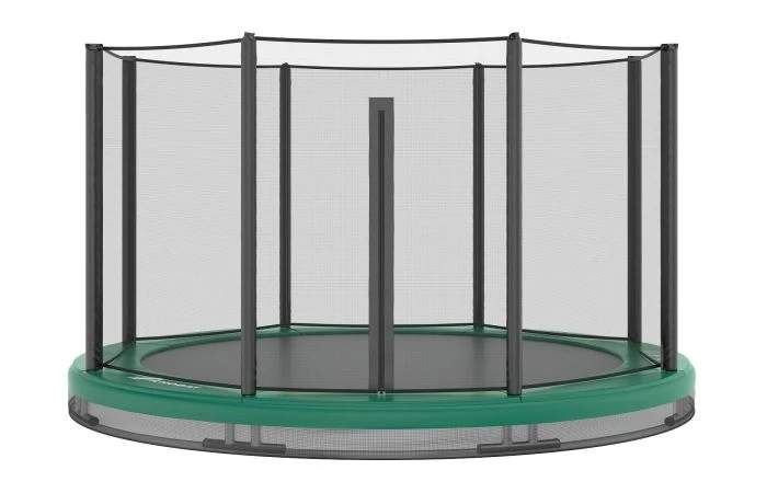 Veel mensen kiezen ervoor om een trampoline in te graven. Voordeel van een Inground trampoline is dat deze een laag frame heeft en de hoge poten dus niet hoeven te worden ingegraven. Het frame staat dus met zijn 20 cm hoogte gewoon op het maainiveau. De belangrijkste redenen om te kiezen voor een Inground trampoline is de veiligheid en omdat een lage trampoline beter te integreren is in een tuin. Waarom is een Inground trampoline veiliger? Kinderen stappen gemakkelijker op en af de trampoline. De hoogte bij een val is beduidend minder dan bij een hoge trampoline. Nog een laatste voordeel is dat je onder de trampoline geen