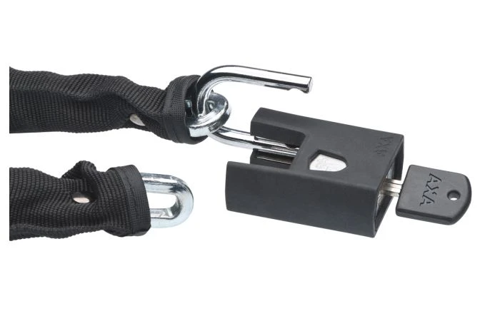 De AXA Clinch+ is een kwalitatieve ketting, uitermate geschikt om uw fiets kort tot middellang te parkeren of om als tweede slot te gebruiken. Dit kettingslot heeft schakels gemaakt van gehard staal en heeft een goede kwaliteit als het gaat om knipkracht. Het losse hangslot maakt de Clinch praktisch in gebruik. De sterke polyester hoes en het rubber rondom het hangslot zorgen voor bescherming van uw fiets tegen eventuele beschadigingen. De Clinch+ wordt geleverd in een zwarte hoes en is 105 cm lang. Mocht het gebeuren dat u uw fietssleutel kwijt bent, dan is dat geen probleem. Een extra sleutel kan via de AXA online sleutelservice besteld worden en wordt binnen enkele dagen geleverd.