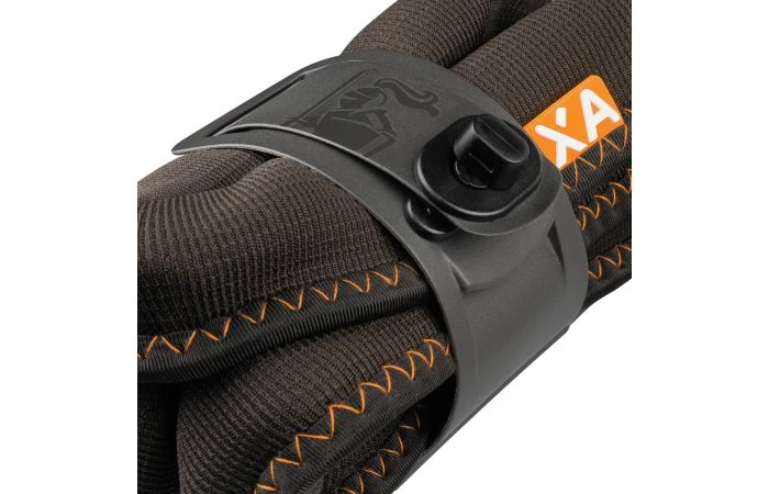 Het vouwslot wordt inclusief handige houder geleverd. De houder kan op de bidonnokken gemonteerd worden. Mocht dat niet aanwezig zijn op de fiets, kan de houder aan de stang vastgemaakt worden met de 2 mee geleverde strips. Dankzij het antirammelmechanisme heb je tijdens het fietsen geen rammelend geluid.
