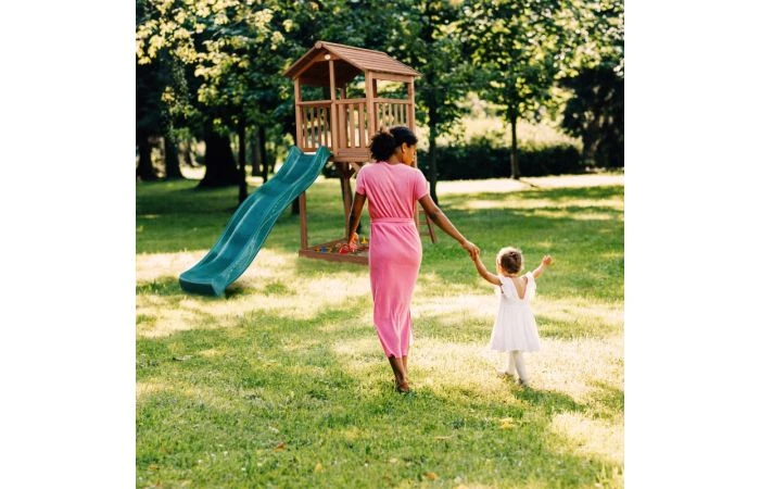 De Beach Tower is gemaakt van FSC 100% Hemlock hout en is daarnaast afkomstig van duurzaam beheerde bossen en daarom ook een milieubewuste keuze. Deze houtsoort splintert niet en is van nature bestand tegen weersinvloeden zoals regen en dus resistent tegen houtrot. Het hout is behandeld met een watergedragen beits en is daardoor vrijwel onderhoudsvrij. Deze beits op natuurlijke basis is niet schadelijk voor het milieu en veilig voor kinderen (zonder chemicaliën). Met een garantietermijn van 10 jaar kunnen je kinderen en jij jarenlang onbezorgd genieten.