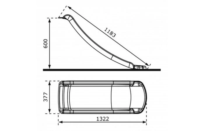 Met een lengte van ongeveer 118 cm is de glijbaan uitermate geschikt voor platformen van ca. 60 cm hoog. De glijbaan is te bevestigen met schroeven met verzonken kop, diameter 5 a 6 mm (niet inbegrepen).