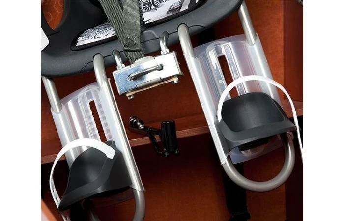 Het voordeel van deze beugel is dat het stoeltje kan worden gemonteerd met de standaard montage materiaal van het stoeltje.