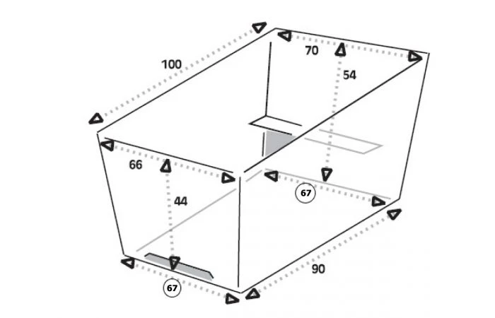 - Vloeroppervlak bak: lengte 86 cm x breedte 65 cm.