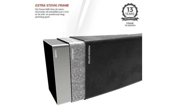 - Extra lange levensduur van de beschermrand door een onder en bovenlaag van wel 0,55 mm dik PVC!