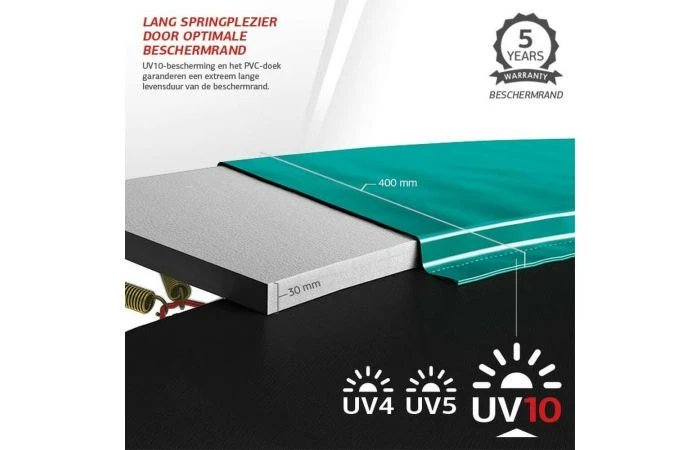 - De beschermrand is extreem UV-bestendig en is door het materiaal en de afwerking extra duurzaam.