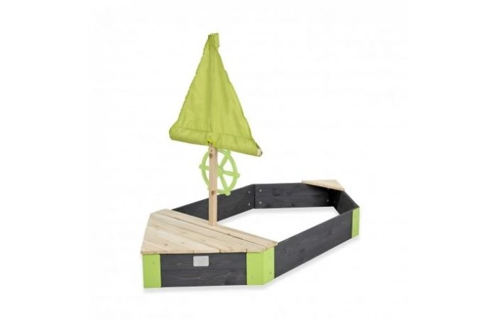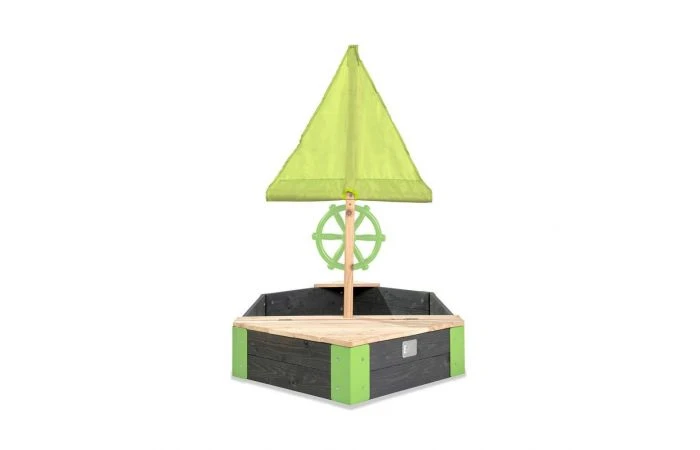 In de EXIT houten zandbak in de vorm van een boot voelen kinderen zich een echte kapitein of matroos. De zandbak is met een draaiend stuurwiel, mast en verborgen opbergruimte van alle speelaccessoires voorzien. Dus kijk of alle vriendjes en vriendinnetjes aan boord zijn, hijs de zeilen en stuur in de juiste richting. Is het eindelijk rustig op zee? Dan is het tijd om het speelgoed uit de opbergruimte te pakken en zandtaartjes voor de bemanning te maken. Schip Ahoy maatjes!