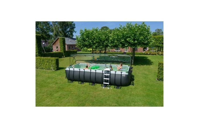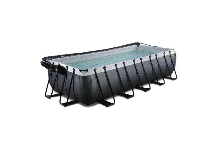 Het EXIT Black Leather zwembad 540 x 250 x 122 cm is een rechthoekig frame zwembad met een zwarte leren print en overkapping. Dit grote zwembad is standaard voorzien van een zandfilterpomp en een zwembadtrap. Daarnaast wordt dit zwembad geleverd met een uitgebreide accessoire set, waarmee je het zwembad in een handomdraai klaarmaakt voor gebruik én eenvoudig in perfecte staat houdt. Robuust, extra diep en van alle gemakken voorzien: beleef zomers lang zwemplezier met het hoogwaardige frame zwembad van EXIT Toys!