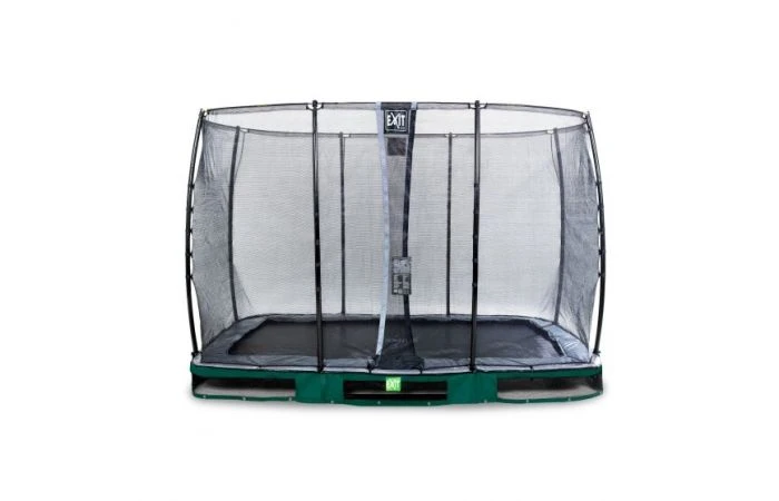 De EXIT Elegant inground trampoline met Economy veiligheidsnet is een rechthoekige ingraaftrampoline van goede kwaliteit met een grijze beschermrand en een groene rok. Deze trampoline graaf je deels in de grond, wat niet alleen extra veilig is maar ook mooi oogt in de tuin. De Elegant inground trampolines met Economy veiligheidsnet zijn veilig, mooi en eenvoudig op te bouwen!
