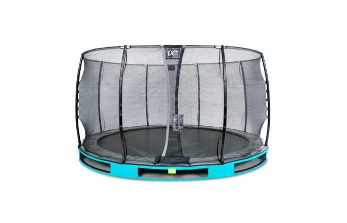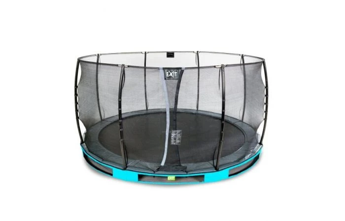 De EXIT Elegant inground trampoline met Economy veiligheidsnet is een ronde ingraaftrampoline van goede kwaliteit met een grijze beschermrand en een blauwe rok. Deze trampoline graaf je deels in de grond, wat niet alleen extra veilig is maar ook mooi oogt in de tuin. De Elegant inground trampolines met Economy veiligheidsnet zijn veilig, mooi en eenvoudig op te bouwen!