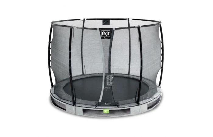 De EXIT Elegant Premium inground trampoline met Deluxe veiligheidsnet is een kleine ronde trampoline van zeer goede kwaliteit met een grijze beschermrand en een grijze rok. Deze trampoline graaf je deels in de grond, wat niet alleen extra veilig is maar ook mooi oogt in de tuin. De Elegant Premium inground trampolines met Deluxe veiligheidsnet zijn veilig, mooi en eenvoudig op te bouwen!