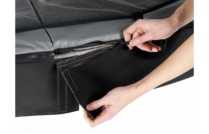 Een trampoline opbouwen in de tuin ingewikkeld? Niet met de EXIT Elegant trampoline! Het frame is eenvoudig te monteren. De zwarte rok kan met een ritssluiting snel aan de beschermrand worden bevestigd. En de beschermrand is stevig en voorzien van een speciaal door EXIT Toys ontwikkeld Foot Protection System (FPS) zodat je nooit met je voet tussen de veren kunt komen tijdens het trampolinespringen. Met de EXIT Elegant trampolines kun je in een handomdraai genieten van urenlang springplezier. Binnen no-time is de trampoline klaar voor gebruik, dus waar wacht je nog op?