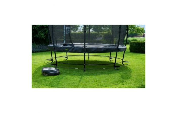 De EXIT robotmaaierstop voor Elegant en Elegant Premium trampolines met een diameter van 366 centimeter is een systeem dat aan de trampoline wordt bevestigd, zodat een robotmaaier het gras rondom de trampoline goed kan maaien. De stop bestaat uit metalen koppelstukken en een glasvezelring, waardoor de robotmaaier niet onder de trampoline kan komen.
