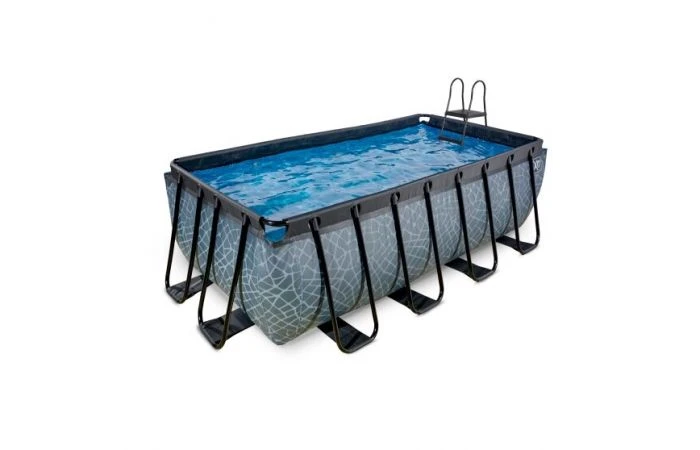 Het EXIT zwembad 400 x 200 x 122 cm is een rechthoekig, grijskleurig frame zwembad. Dit zwembad is standaard voorzien van een zandfilterpomp en een zwembadtrap, waarmee je veilig het zwembad in en uit kunt stappen. Op zoek naar verkoeling? Het EXIT zwembad is maar liefst 122 centimeter diep waardoor je echt onder water kunt duiken. Met het hoogwaardige frame zwembad van EXIT Toys beleef je gegarandeerd de leukste wateravonturen in je eigen tuin!