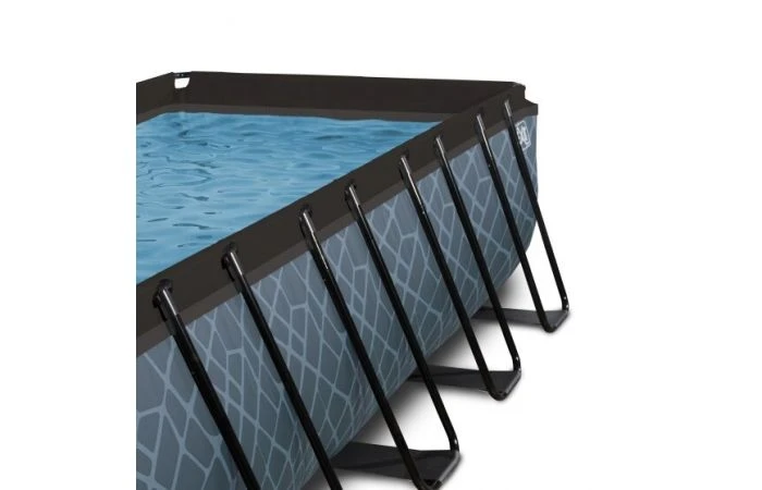 Het zwembad heeft een modern en stoer steenpatroon op de zijkant en is daarmee een échte blikvanger in de tuin. Het EXIT zwembad is uitgevoerd met sterke 3-laags wanden van PVC en polyester en de binnenzijde van het zwembad is blauw voor het frisse zwembadgevoel. Het meegeleverde watercirculatiesysteem maakt dit zwembad helemaal af. De hoogwaardige zandfilterpomp reinigt de kleinste deeltjes uit het zwembad door het water krachtig door het filterbed heen te pompen. Dit zorgt ervoor dat vuil, zoals zand, ongedierte of algen achterblijven in het filter.