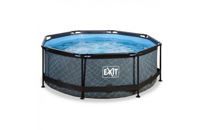 Het EXIT Stone zwembad ø244x76cm is een rond, grijskleurig frame zwembad. Het compacte zwembad is standaard voorzien van een filterpomp en valt op tussen andere zwembaden door zijn stoere steenpatroon. Ben je op zoek naar een leuk en tegelijkertijd uniek en hoogwaardig frame zwembad in je tuin? Steel de show met de ronde zwembaden van EXIT Toys.