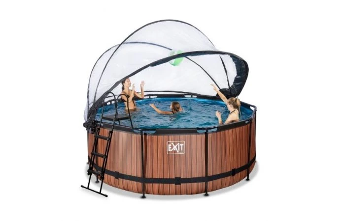Het EXIT zwembad ø360 x 122 cm is een rond grijskleurig frame zwembad met overkapping. Het zwembad is standaard voorzien van een zandfilterpomp en een zwembadtrap, waarmee je veilig het zwembad in en uit kunt stappen. Het frame zwembad biedt genoeg ruimte om heerlijk op een luchtbed te dobberen. En wil je toch liever onder water zwemmen? Het EXIT Stone zwembad is maar liefst 122 centimeter diep waardoor je echt onder water kunt duiken. Met het hoogwaardige frame zwembad van EXIT Toys beleef je gegarandeerd de leukste wateravonturen in je eigen tuin!