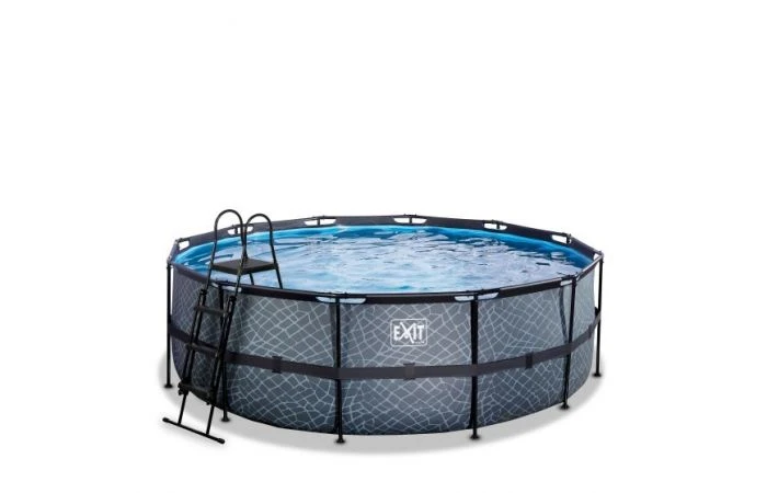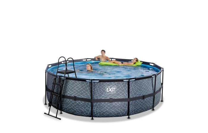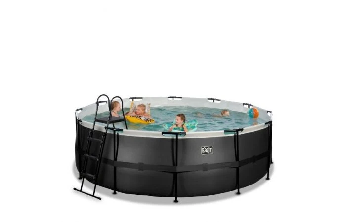 Het EXIT zwembad ø427 x 122 cm is een rond frame zwembad met een zwarte leren print. Het zwembad is standaard voorzien van een filterpomp en een zwembadtrap, waarmee je veilig het zwembad in en uit kunt stappen. Door de grote diameter van het zwembad is er genoeg ruimte om heerlijk op een luchtbed te dobberen. En wil je toch liever onder water zwemmen? Het EXIT Black Leather zwembad is maar liefst 122 centimeter diep waardoor je echt onder water kunt duiken. Met het hoogwaardige frame zwembad van EXIT Toys beleef je gegarandeerd de leukste wateravonturen in je eigen tuin!