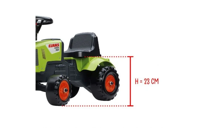 Deze kunststof Falk ‘Claas Axos 310’ groene looptractor is uitgevoerd in origineel Claas design, heeft een totale lengte van 97cmx30x37cm. Wordt geleverd inclusief aanhanger. Het is een mooie looptractor van een robuuste kwaliteit, heeft kunststof wielen die zeer slijtvast zijn en het stuur bevat een toeter met geluidsfunctie. De aanhanger is makkelijk te koppelen en te ontkoppelen: zo kan er van alles vervoerd worden. Geschikt voor kinderen vanaf 1 jaar en tot een gewicht van max. 30kg.