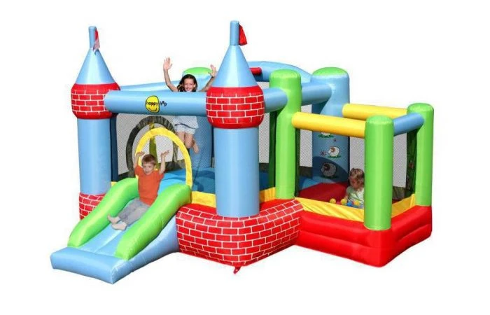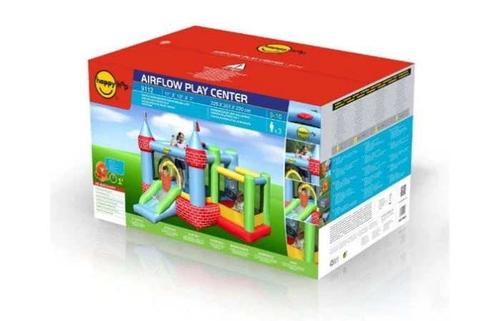 Een springkasteel met naast een springkussen ook nog eens een ballenbak en een glijbaan. eindeloze uren speelplezier aansprekende kleuren inclusief blower inclusief haringen, tas en reparatieset.