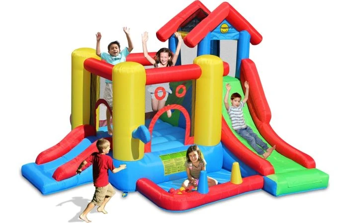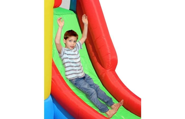 Klim, klauter, glijd, spring, dart, basketbal, of leef je uit in de ballenbak. Alles kan op dit Happy Hop 7 in 1 Playcenter. De Happy Hop 7 in 1 Playcenter wordt inclusief blower, haringen, tas en reparatieset geleverd. Kies voor een leuke en veilige manier van spelen voor uw kinderen. En natuurlijk super veel lol. De Happy Hop 7 in 1 Playcenter staat garant voor eindeloos speelplezier. Het kasteel is gemaakt van duurzaam, gelamineerd PVC. Het springkussen is in 2 minuten opgeblazen.