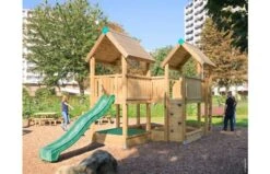 Gecertificeerd voor commercieel gebruik en compact, het ideale houten speelhuis voor scholen, een sportcomplex, kinderopvang of vakantiepark.