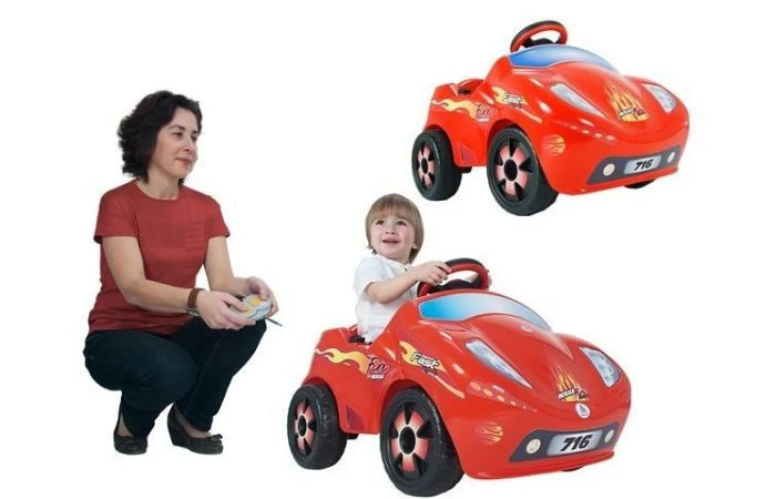 Met twee versnellingen: voorwaarts en achteruit, te bedienen met een voetpedaal. Snelheid 3–4 km per uur. Voorzien van elektrische rem. Batterijen voor de afstandsbediening zijn niet inbegrepen. Geschikt voor kinderen vanaf 1 jaar. Afmetingen: 83,5 x 54 x 52 cm.