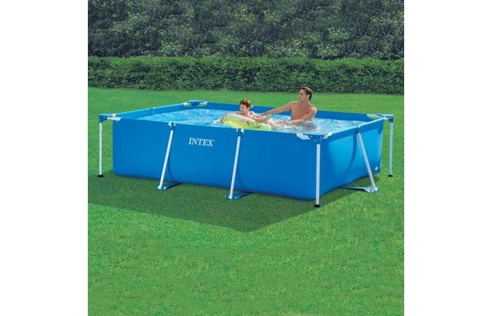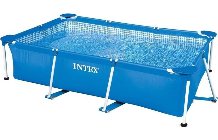 Dit Intex Frame zwembad is zeer eenvoudig en binnen 30 minuten te plaatsen. Het zwembad is ideaal voor op een rechthoekige terras. Dit zwembad is van hoogwaardige kwaliteit en heeft een zeer stevige constructie voorzien van een robuuste, gecoate metalen frame met een gerasterde polyester binnenlaag met aan beide zijden een dikke, duurzame PVC buitenlaag. Daarnaast is het zwembad voorzien van een handige leegloopventiel, waar eenvoudig een tuinslang op kan worden aangesloten. Dit rechthoekige zwembad heeft kindvriendelijke ronde hoeken, dit zijn niet alleen stabiele bevestigingspunten maar ook praktische plateaus om uw drinken op te zetten als u heerlijk in het zwembad of op uw luchtmatras ligt te ontspannen.