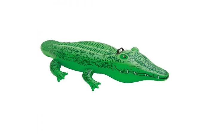 Ride on krokodil, met twee handgrepen voor een stabiele zit. Afmetingen: 168 x 86 cm. Vervaardigd van stevige kwaliteit vinyl. Inclusief reparatiesetje. Geschikt voor kinderen vanaf 3 jaar.