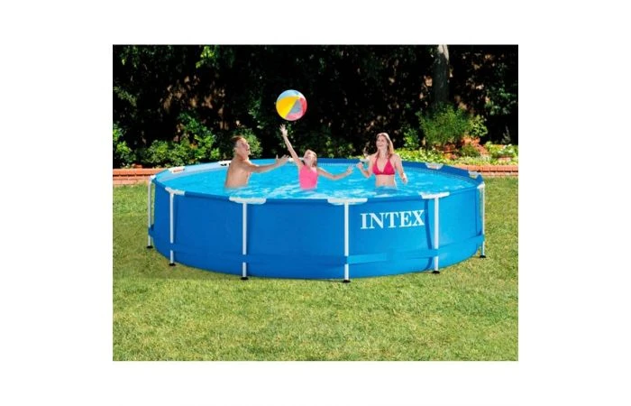 Framebad met roestbestendig metalen frame: 366 x 76 cm. Vervaardigd van 2 lagen zware kwaliteit PVC met gerasterde nylonpolyester tussenlaag. De pomp heeft een doorloopsnelheid van 2271 liter per uur.