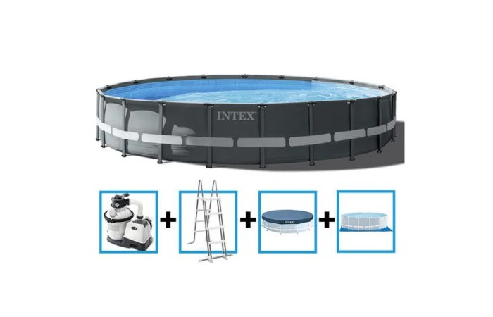 Deze Intex Ultra XTR Metal Frame pool met zandfilter en een doorsnede van 610 cm gaat nét een stapje verder dan de standaard frame zwembaden.