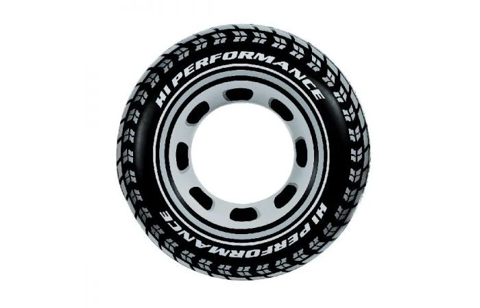 Zwemring met autoband print, Ø 91 cm. Verpakt in polybag met kopkaart.