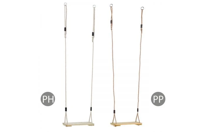 PH-touw: Vervaardigd uit korte gespannen kunststofvezels, is weerbestendig, esthetisch en handvriendelijk. Ongetwijfeld de beste touwsoort voor alle schommels. De standaard kleur is beige.