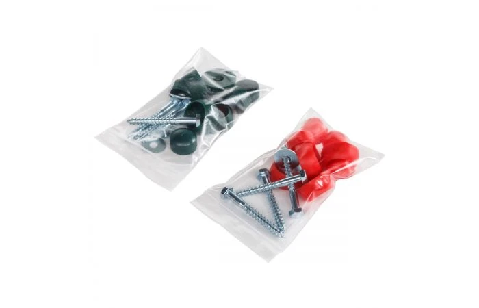 Optioneel is een montage set met het bevestigingsmateriaal verkrijgbaar. Deze montage set bevat 4 schroeven (DIN571 Ø8) met sluitring en 4 afdekdoppen (rood of groen).