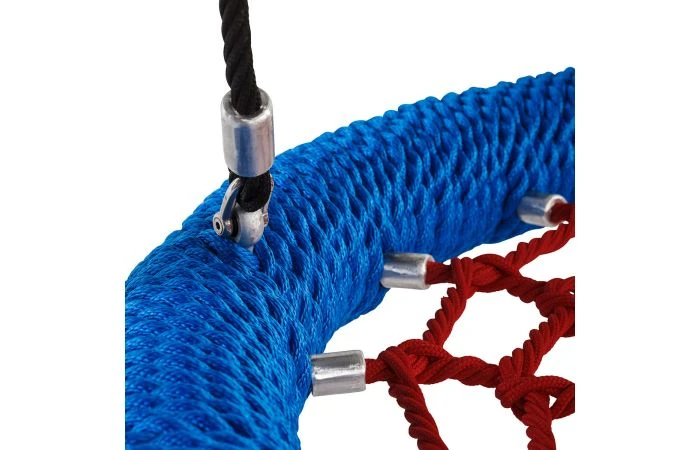 Hij is verkrijgbaar in de maten Ø 1000 mm en Ø 1200 mm. De ophangtouwen zijn vervaardigd in gewapend touw met een roestvrij stalen ketting (Ø 6 mm) aan het bovenuiteinde om de ophanglengte aan te passen. De sluitingen zijn vervaardigd in kwaliteitsvol roestvrij staal. Alle bevestigingshulzen zijn vervaardigd in aluminium.