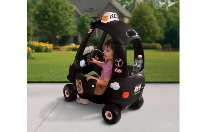 Met deze Taxi Cozy Coupe steel je de show! Wie pik jij op? Deze loopauto is voorzien van een grappig gezichtje, en is ideaal voor groeiende peuters. En hij biedt twee fases! Fase 1: de ouders duwen het kindje met het duwhandvat in het dak, de voetjes van het kind bevinden zich op de verwijderbare bodemplaat. Fase 2: de klassieke ‘lopende’ voortbeweging met de voeten op de grond zodat je kleintje alleen op avontuur uit kan!