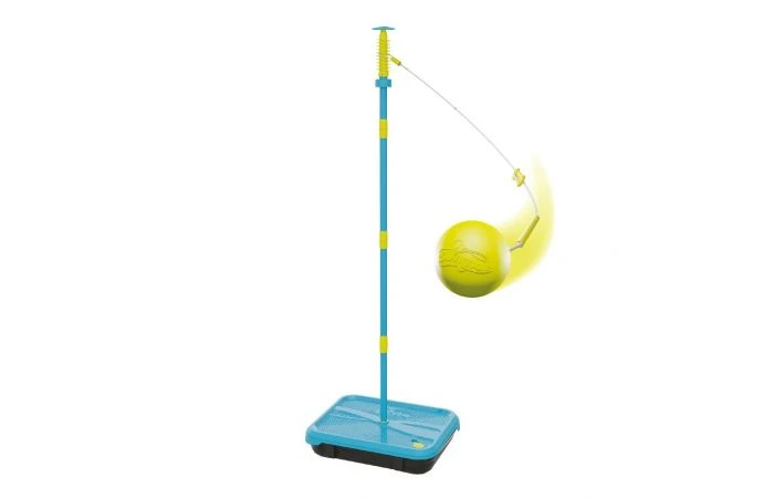 Deze leuke set bevat een in hoogte verstelbare paal (tot maximaal 140 cm), twee wedstrijdrackets en een rubberen tennisbal. Wordt geleverd met een kartonnen sleeve. Geschikt voor kinderen vanaf zes jaar.