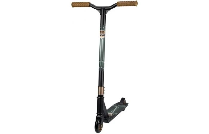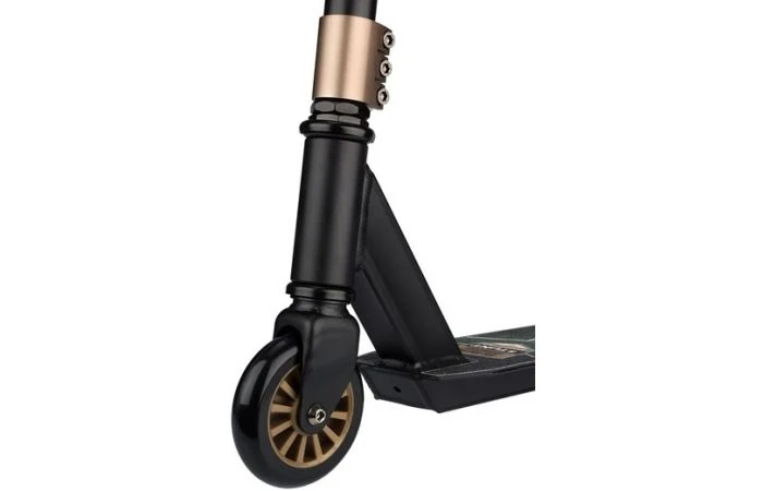 Rule the skatepark op je Black Dragon stuntstep! De Black Dragon Stunt Scooter is geheel gemaakt van aluminium dus sterk maar toch heel licht in gewicht. De step heeft een extra sterke rechthoekige frameconstructie met triple stangklem. Het stuur is extra breed, zodat je meer controle over je scooter hebt bij het stunten. De rubberen handgrepen zijn aan de uiteinden voorzien van stootbescherming. Maximaal belastbaar tot ca. 100 kg. De step is niet opvouwbaar.