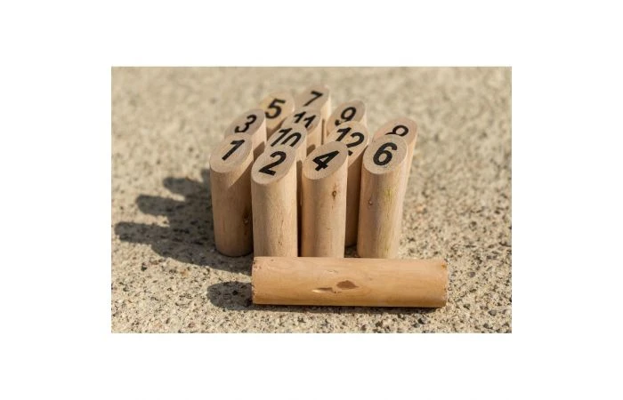 Het populaire werpspel uit Scandinavië speel je nu eenvoudig in de tuin! Inhoud: 12 genummerde kegels, een werpstokje en een tasje.Â