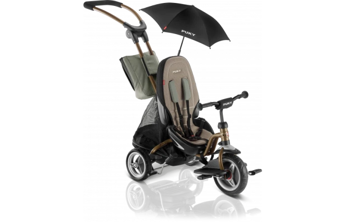 Uitgerust met alle finesse en perfect afgestemd op de behoeften van de ouders, presenteert de CAT S 6 CEETY® zichzelf. De extra transporttas en grote bagagebak met afsluitbaar net zorgen voor veel ruimte. De grote en gevoerde kuipstoel met vijfpuntsgordel en de voetsteun bieden optimale ondersteuning voor het kind, zelfs tijdens het slapen. De comfortabele duwstang biedt optimale controle. De besturing, die met één hand kan worden geblokkeerd, zorgt voor nauwkeurig rechtvooruit rijden bij het duwen van de PUKY® CAT S 6 CEETY®. De vrijloop kan ook met een handvat in of uitgeschakeld worden, afhankelijk van of het voertuig geduwd wordt of dat deze in speelmodus staat. De PUKY® CAT S 6 CEETY® is verkrijgbaar in brons, rood, zwart en zilver.