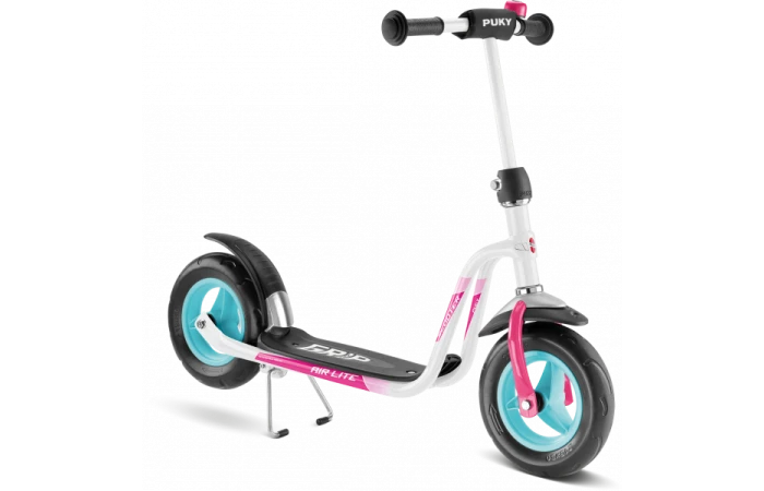 Voor kinderen die al een gevorderd evenwicht hebben (vanaf 3 jaar) biedt de PUKY® R 03 alles wat een klassieke step maakt. De Soft-Comfort banden van 8,4″” overwint gemakkelijk kleinere obstakels, biedt voldoende houvast en is erg stil. De R 03 biedt extra mogelijkheden om te leren met de bel, opvouwbare standaard en de kick-rem. De laatste is geïntegreerd in het achterspatbord en kan worden bediend met de linker- en rechtervoet. Het stuur en de banden met kogellagers zorgen voor makkelijke bediening, goede roleigenschappen en duurzaamheid. De anti-slip voetenplank zorgt ervoor dat de kinderen goed blijven staan. De PUKY® R 03 is verkrijgbaar in de kleuren wit/roz en blauw.