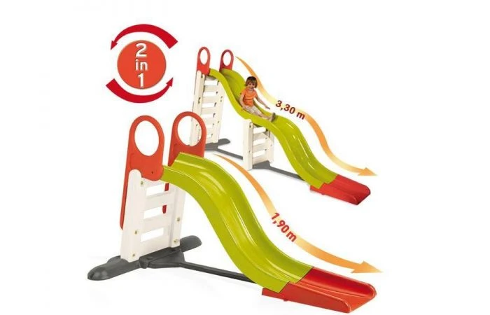 De kwalitatief hoogwaardige Mega Gliss is eenvoudig van een golvend glijvlak van 190cm te verbouwen naar een glijvlak van 330cm. De glijbaan is voorzien van brede handgrepen en antislip treden voor extra veiligheid. Daarnaast is de glijbaan anti-UV gecoat waardoor deze duurzamer is en langer mooi blijft. Montage is zeer eenvoudig.