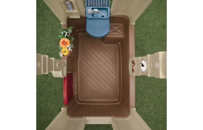 – Interieur bestaat uit een keukenstoel, open haard, speeltelefoon, ingebouwde planken, keukentafel en kraan