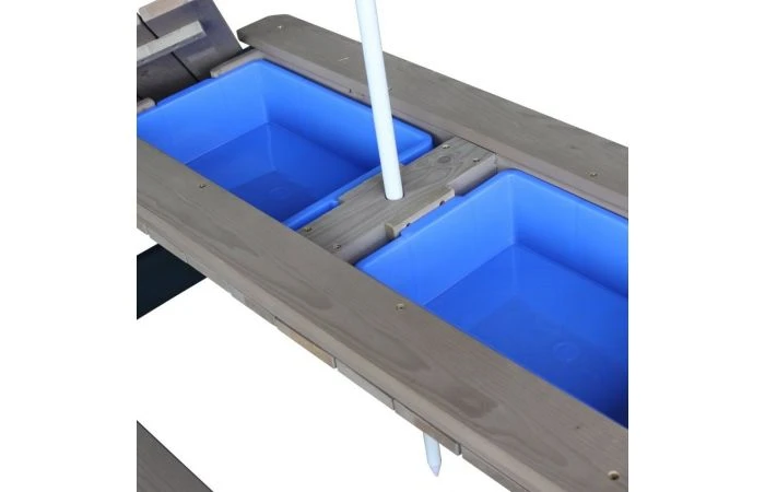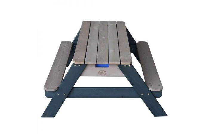 Nick heeft onder het afneembare tafelblad een geheime ruimte met twee blauwe bakken. Deze blauwe bakken kunnen gevuld worden met zand en/of water, maar je kunt er natuurlijk ook speelgoed in opbergen. Daarnaast zijn de bakken uitneembaar, zodat deze eenvoudig schoongemaakt kunnen worden. De klassieke combinatie van zand en water is altijd een succes bij kinderen! Uitgespeeld? In een handomdraai verander je de zand en water tafel weer in een picknicktafel waaraan de kinderen kunnen knutselen, tekenen of genieten van wat lekkers.