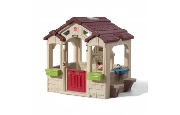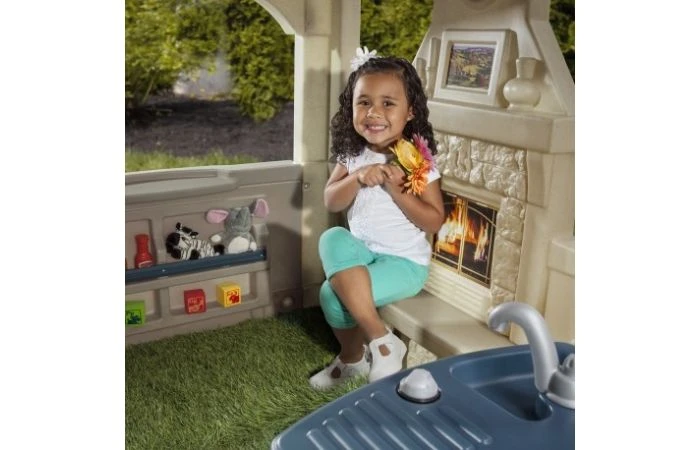 De Step2 Charming Cottage geeft kinderen een gezellige eigen plek. Kinderen kunnen de werkende, elektronische deurbel gebruiken om hun vrienden te laten weten wanneer ze zijn aangekomen! Kinderen kunnen hun eigen fantasierijke etentje houden met de aangebouwde buiten eettafel. Dit stoere speelhuisje voor kinderen heeft een open ontwerpconcept waarmee kleintjes zowel binnen als buiten met hun vrienden kunnen spelen!