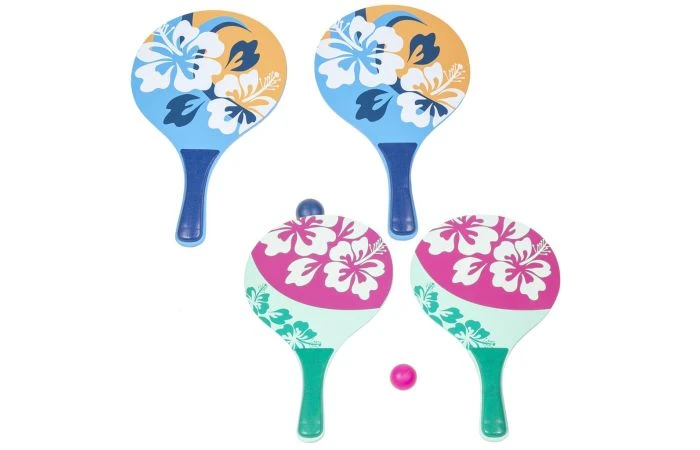 Summertime beachball set in flower dessin. Lengte van het racket: 38 cm. Dikte: 8 mm. Wordt in twee fraaie kleurcombinaties geleverd in net, inclusief pvc bal. Diameter van de bal: 4 cm. Geschikt voor kinderen vanaf 5 jaar.