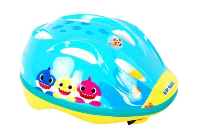 Volare Kinderfietsen beschikt over een grote collectie licentie helmen. Een daarvan is deze prachtige Baby Shark fietshelm. De mooie combinatie tussen de blauw, geel en rode kleur en de Baby Shark decoraties geven de helm een perfecte uitstraling. Met de draaiknop is de hoofdomtrek van de helm verstelbaar van 51 tot 55 cm. Daarbij is de onderkant van de helm ook bedekt. De helm weegt slechts 240 gram. Dat maakt hem extra licht en dus makkelijk te dragen. De helm is naar de strengste eisen van het TÜV/GS goedgekeurd.