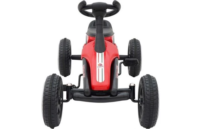 Deze Volare Mini Go Kart in de kleur rood heeft een vet stoer offroad uiterlijk en is geschikt voor kinderen van 3 tot 5 jaar oud.