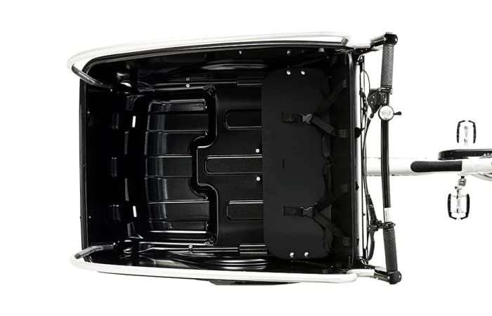 Voor wie meer ruimte wenst, is de Cargoo ook verkrijgbaar met de optie van een opklapbare bank. Ideaal als je allebei ruimte nodig hebt om de kinderen mee te nemen en als je ruimte nodig hebt voor bagage, goederen of andere spullen die ruimte in beslag nemen.